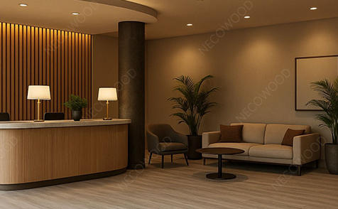 एक मध्यम आकार के बुटीक होटल ने लॉबी, गलियारों, सार्वजनिक क्षेत्रों और अतिथि कक्षों पर ध्यान केंद्रित करते हुए पूर्ण आंतरिक ताजगी की मांग की। परियोजना के लक्ष्यों में एकीकृत लकड़ी जैसा सौंदर्य, कम रखरखाव और नवीकरण के दौरान न्यूनतम डाउनटाइम शामिल था। वास्तुकार ने इसकी स्थायित्व और तेजी से स्थापना प्रोफ़ाइल के लिए एक डब्ल्यूपीसी छत और दीवार प्रणाली निर्दिष्ट की।