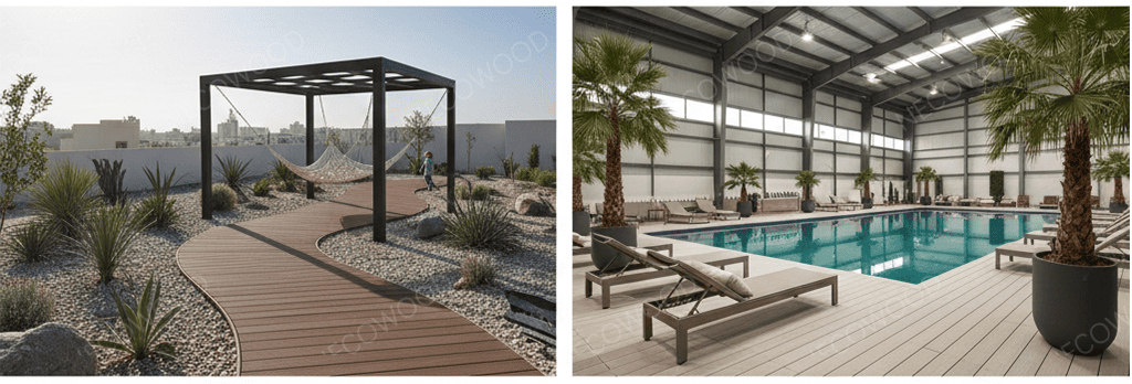 कुवैत के लक्जरी आवासीय क्षेत्र में, बाहरी रहने की जगहें घर का विस्तार हैं। जैसे-जैसे तापमान बढ़ रहा है, घर के मालिक और ठेकेदार पारंपरिक लकड़ी से दूर जा रहे हैंसमग्र अलंकार, डेकिंग बोर्ड लकड़ी के विकल्प, औरइको डेकिंग बोर्ड.